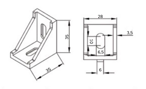 90° Winkel zur Verbindung von Profilen. Abmessungen 35 x 28 x 35 mm. Befestigungsmaterial ist nicht im Lieferumfang enthalten. vollständige Beschreibung und Parameter
