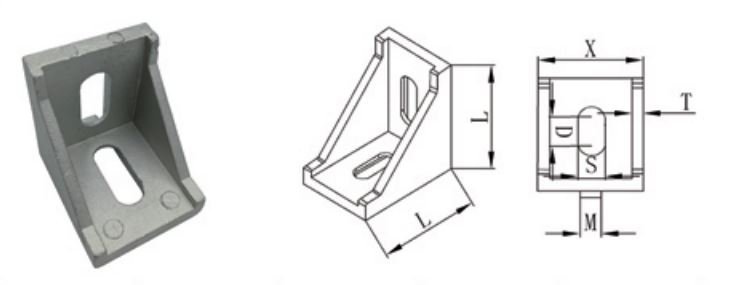90° Winkel zur Verbindung von Profilen. Abmessungen 40 x 35 x 40 mm. vollständige Beschreibung und Parameter