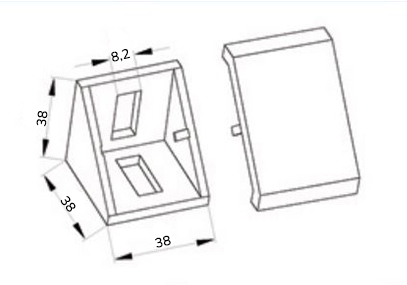 90° Winkel zur Profilverbindung, mit Abdeckung. Abmessungen 38 x 38 x 38 mm. Befestigungsmaterial ist nicht im Lieferumfang vollständige Beschreibung und Parameter