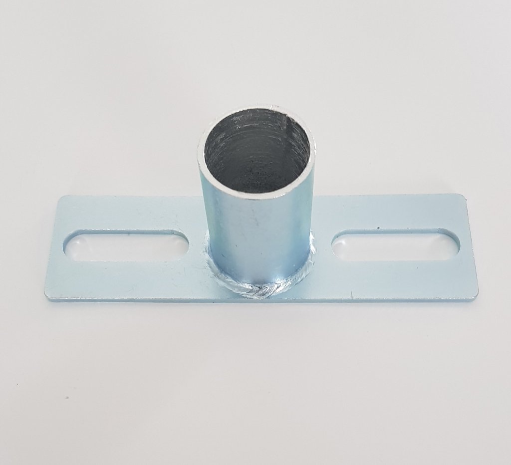 Verbindungadapter für viereckiges Rohrsystem. Seine robuste Konstruktion gewährleistet eine feste und stabile Verbindung. Farbe blau, verzinkt.
