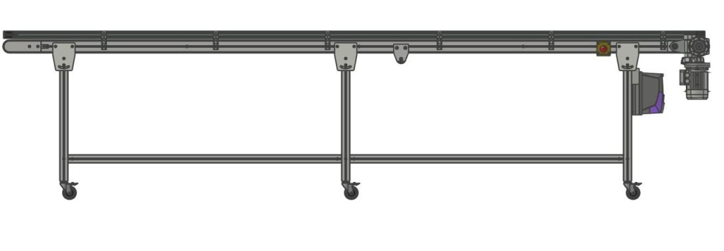 Ein Förderband zur Beförderung von Materialien und Produkten. Es wird verwendet, um nicht nur Schüttgut, sondern auch Stückgut in Verteilzentren, Flughäfen oder Supermärkten zu transportieren.