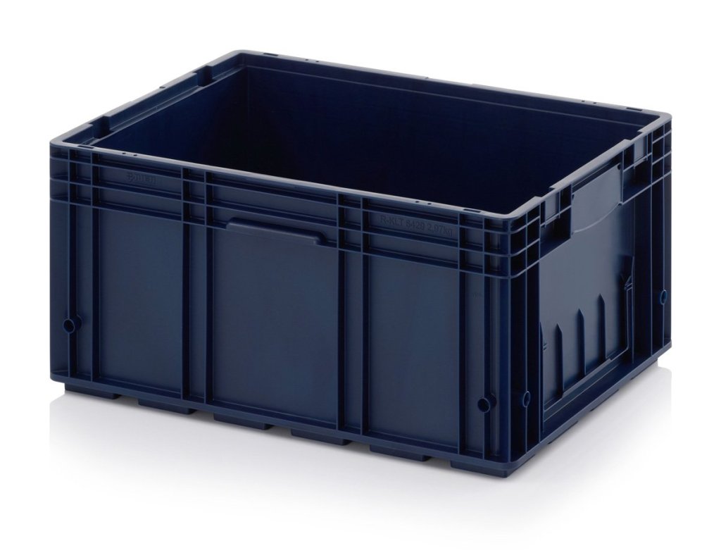 Behälter R-KLT 600 x 400 x 280 mm, Boden glatt, Traglast 20 kg, statische Traglast max. 600 kg, Farbe RAL 5003 blau. vollständige Beschreibung und Parameter