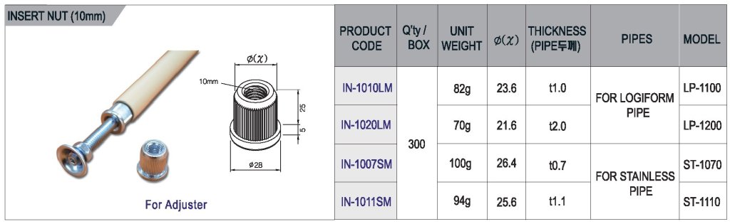 Einschlaghülse mit Gewinde M10, IN-1011SM. Für Edelstahlröhren Logiform ST-1110, Wandstärke 1,1 mm. vollständige Beschreibung und Parameter