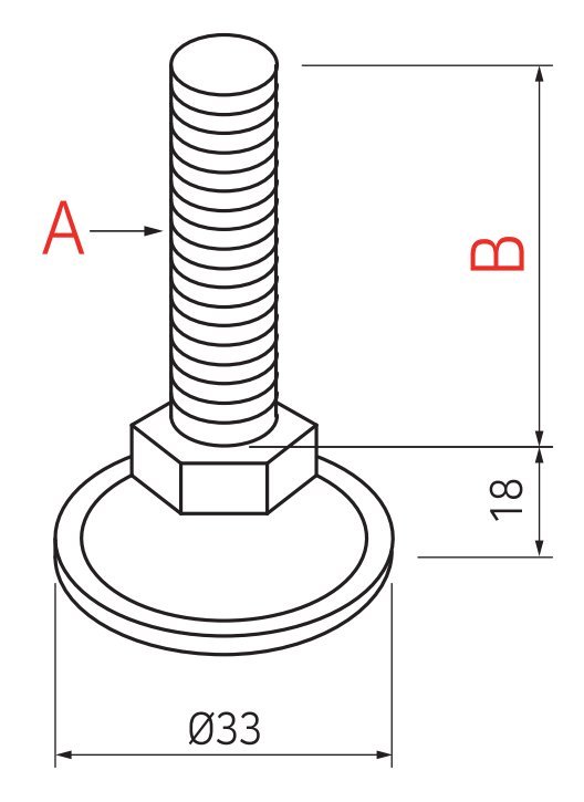 Einschraubfuß AD-3012MSM. Gewinde M12, Länge 68 mm.