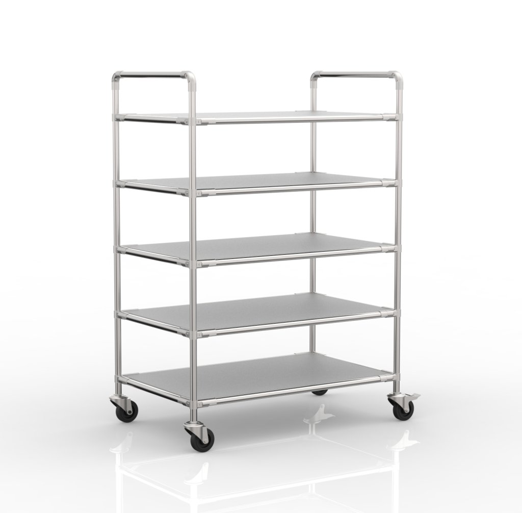 Ein antistatischer Regalwagen aus einem Rohrbaukastensystem ist die ideale Wahl für die Handhabung von Waren, die empfindlich auf vollständige Beschreibung und Parameter