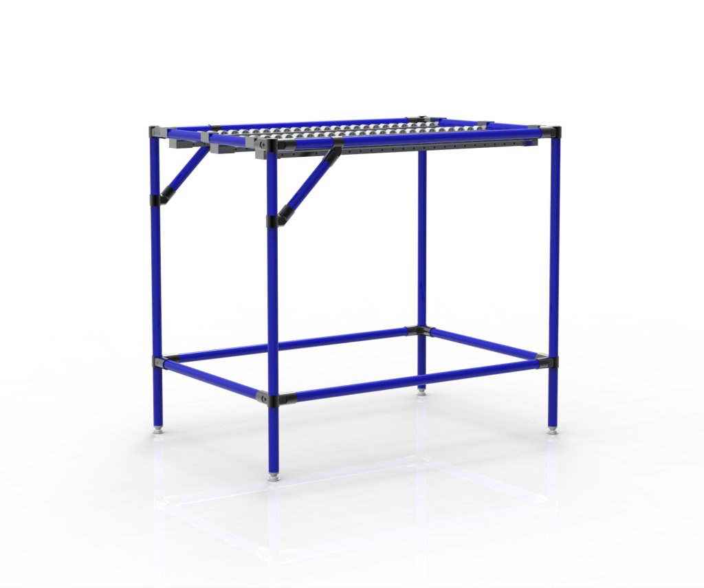 Das Fördersystem mit versenkten Rollenbahnen (auch als Rollenförderer bekannt) ist ideal für den reibungslosen Transport von KLT-Boxen, Paketen und anderen Stückgütern. Dank der modularen Rohrkonstruktion lässt sich das System leicht an die spezifischen Anforderungen des Betriebs anpassen.