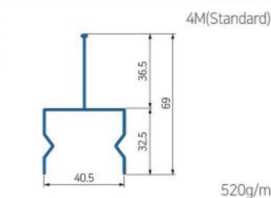 Führung für Rollenbahn PA-405A, Ausführung Aluminium. Breite 41 mm, Gewicht 520 g/m. vollständige Beschreibung und Parameter