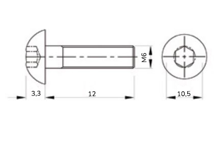 Die Halbrundkopfschraube ist eine übliche Verbindungselement mit einem abgerundeten Kopf. Dieses Design sorgt für eine bessere Kraftverteilung beim Anziehen der Schraube und gewährleistet eine feste Verbindung. Gewindedurchmesser M6. Gesamtlänge 15,3 mm. Gewicht 3,14 g.