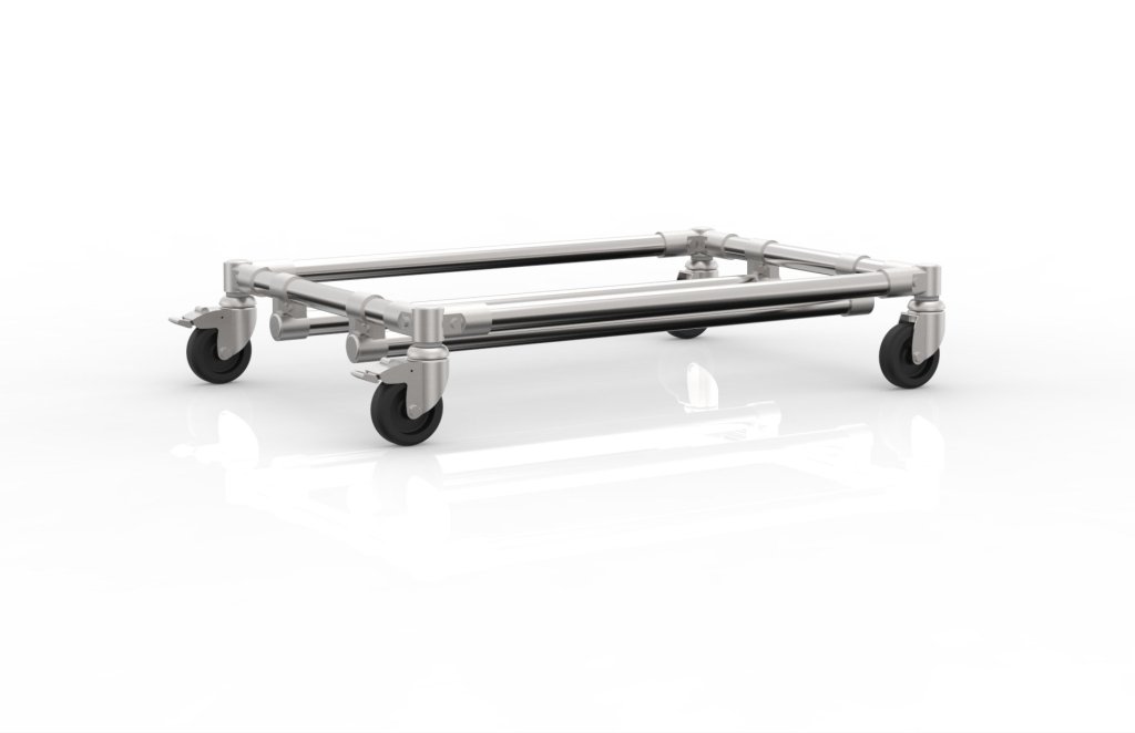 Ein Manipulationswagen aus einem Rohrsystem ist für verschiedene Handhabungszwecke in Lagern und Werkstätten geeignet. Zum Fahrgestell gehören 2 drehbare Räder mit Bremse und 2 drehbare Räder ohne Bremse mit einem Durchmesser von 75 mm, die eine einfache Handhabung von Gegenständen ermöglichen. Die Innenmaße sind für eine Kiste mit den Abmessungen 600 x 400 mm ausgelegt. Abmessungen 678 x 478 x 138 mm.