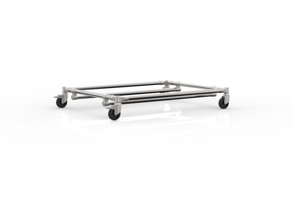 Ein Manipulationswagen aus einem Rohrsystem ist für verschiedene Handhabungszwecke in Lagern und Werkstätten geeignet. Zum Fahrgestell gehören 2 drehbare Räder mit Bremse und 2 drehbare Räder ohne Bremse mit einem Durchmesser von 75 mm, die eine einfache Handhabung von Gegenständen ermöglichen. Das Innenmaß ist für 2 Kisten mit den Maßen 600 x 400 mm ausgelegt. Abmessungen 878 x 678 x 138 mm.