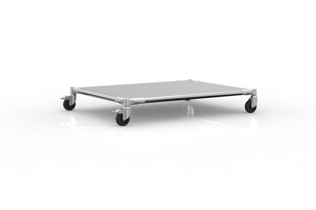 Ein Manipulationswagen aus einem Rohrsystem ist für verschiedene Handhabungszwecke in Lagern und Werkstätten geeignet. Teil des Fahrgestells ist eine Laminatplatte, 2 drehbare Rollen mit Bremse und 2 drehbare Rollen ohne Bremse mit einem Durchmesser von 75 mm, die eine einfache Handhabung von Gegenständen ermöglichen. Das Innenmaß ist für 2 Kisten mit den Maßen 600 x 400 mm ausgelegt. Abmessungen 878 x 678 x 138 mm.