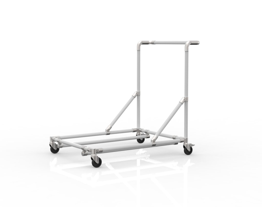Ein Manipulationsfahrgestell mit Griff aus einem Rohrsystem ist geeignet für verschiedene Manipulationszwecke in Lagern und Werkstätten. Zum Fahrgestell gehören 2 drehbare Räder mit Bremse und 2 drehbare Räder ohne Bremse mit einem Durchmesser von 75 mm, die eine einfache Handhabung von Gegenständen ermöglichen. Das Innenmaß ist für 2 Kisten mit den Maßen 600 x 400 mm ausgelegt. Abmessungen 878 x 678 x 900 mm.