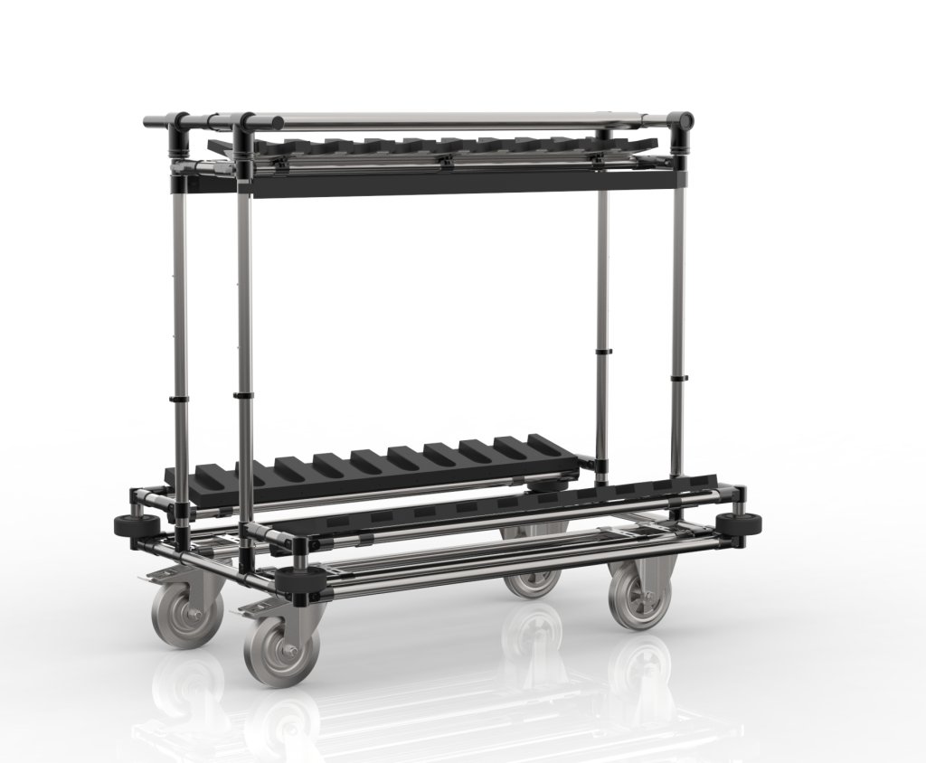 Höhenverstellbarer Waffenwagen aus einem Rohrbaukastensystem, ideal für die sichere Lagerung und den Transport von Schusswaffen. vollständige Beschreibung und Parameter