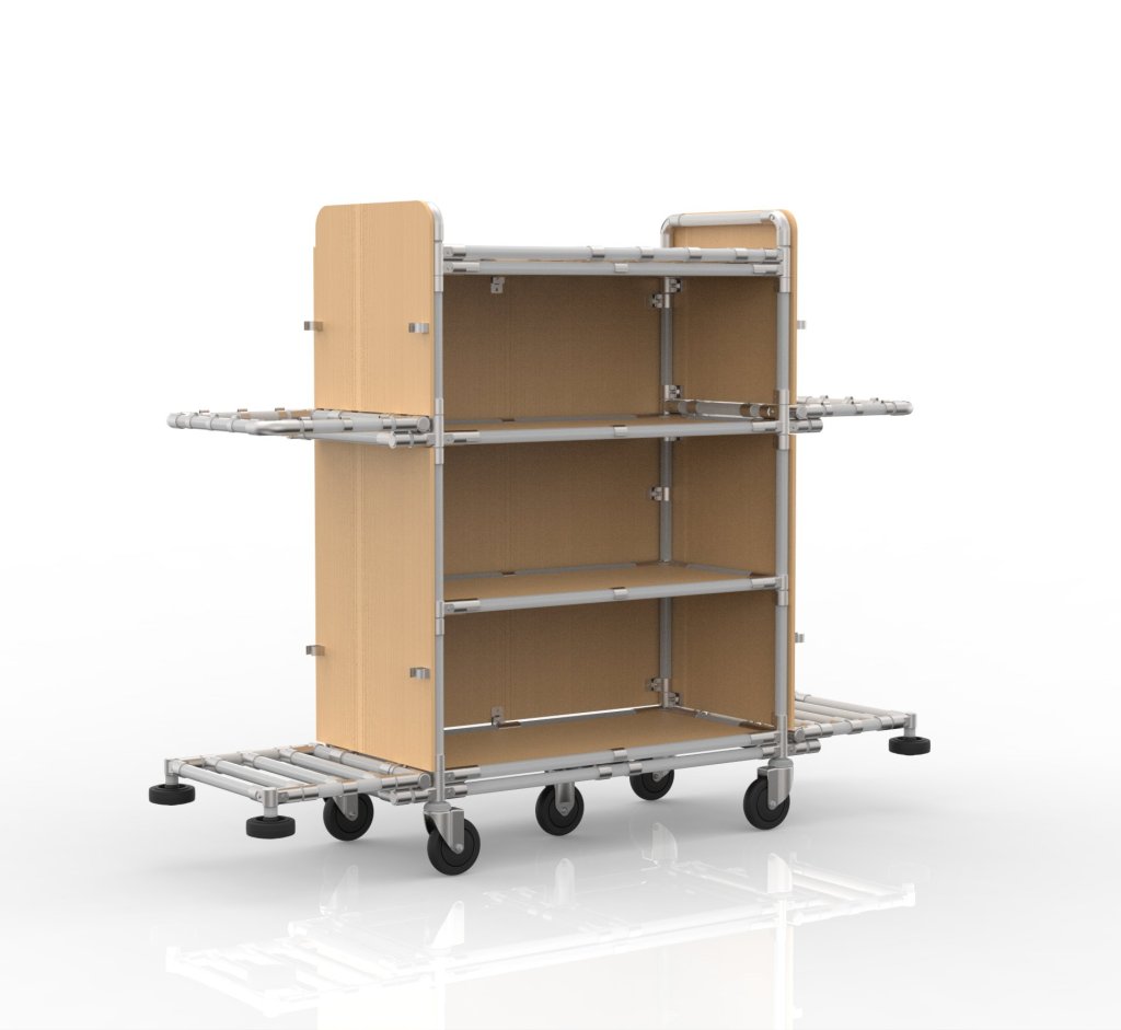 Der maßgeschneiderte Hotel-Reinigungswagen bietet ausreichend Platz für die Aufbewahrung von Reinigungsmitteln, Handtüchern und anderen Notwendigkeiten. Darüber hinaus erleichtert die robuste und leichte Konstruktion die Bewegung in engen Fluren. Verschiedene Farbkombinationen der Konstruktion, einschließlich unterschiedlicher Laminatplatten, sind möglich. Tragfähigkeit pro Etage 50 kg, Gesamttragfähigkeit 200 kg. Abmessungen 1429 x 1841 x 483 mm.
