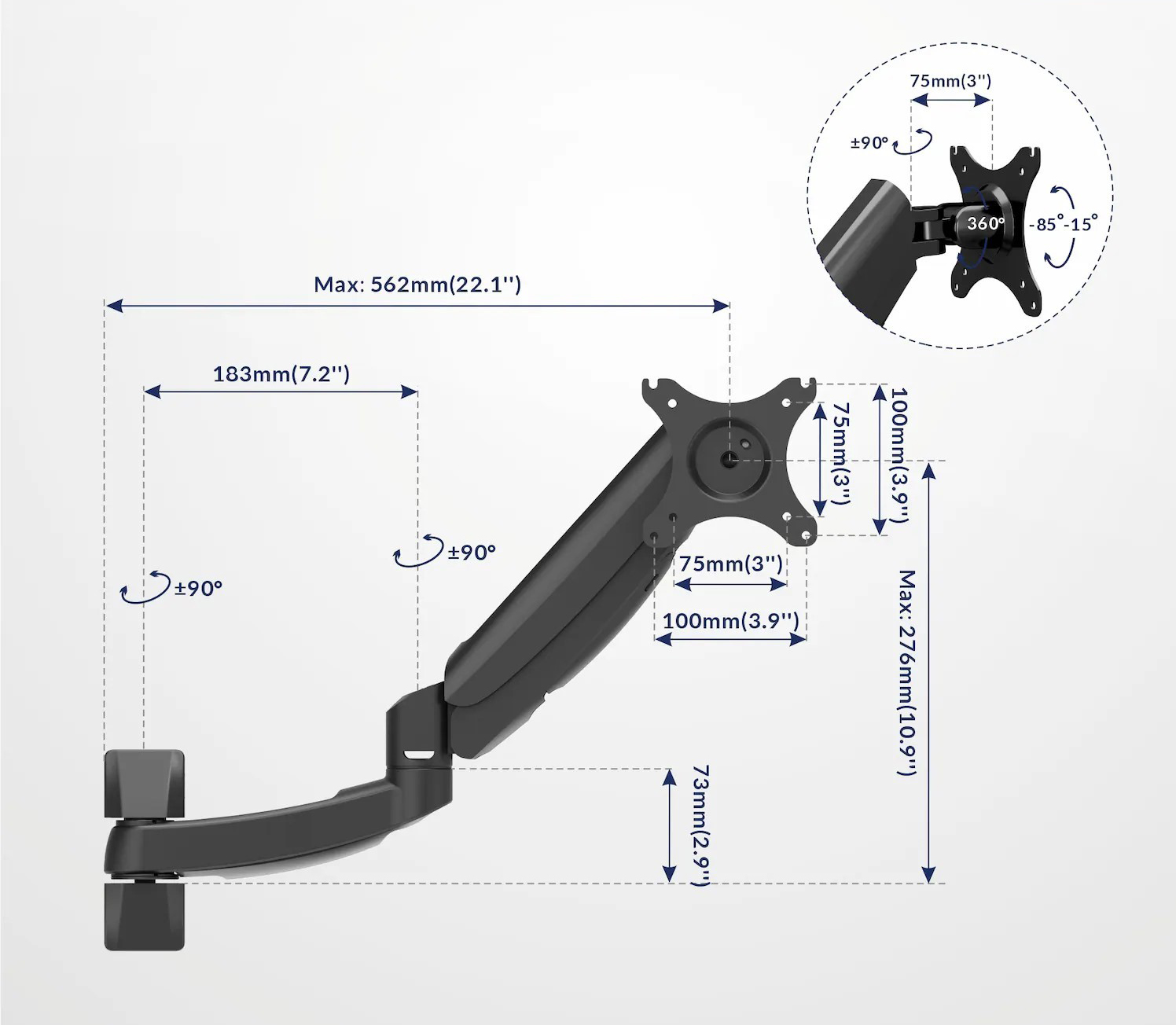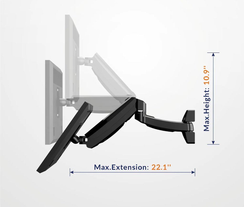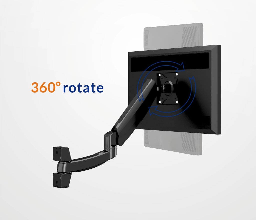 Schwenkbarer Monitorhalter für Bildschirme 13–27". Hergestellt aus hochwertigen Materialien mit präziser Verarbeitung und einfacher Montage. Kompatibel mit allen Arbeitstischen mit Aufsatz sowie zur Wandmontage geeignet. Maximale Traglast: 15 kg.