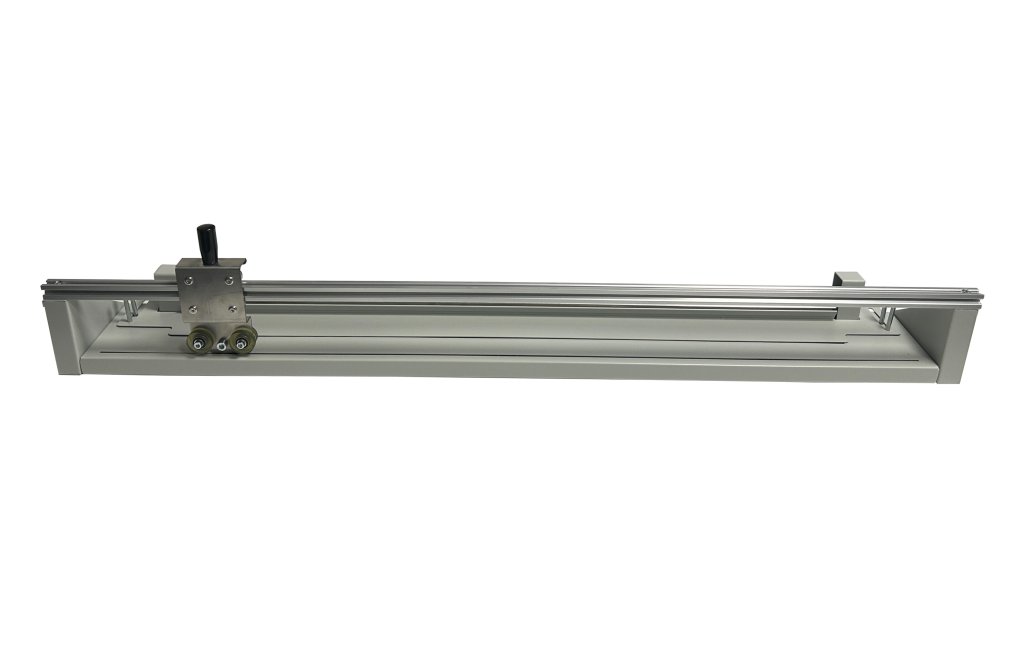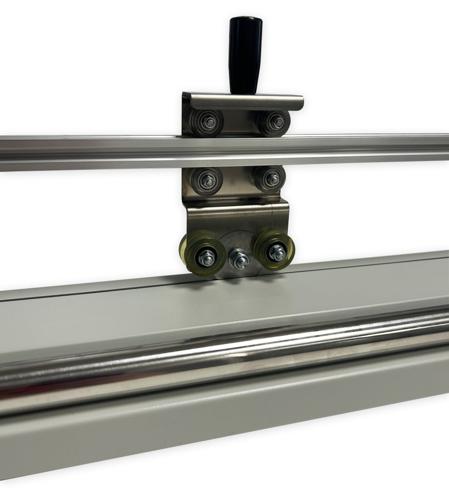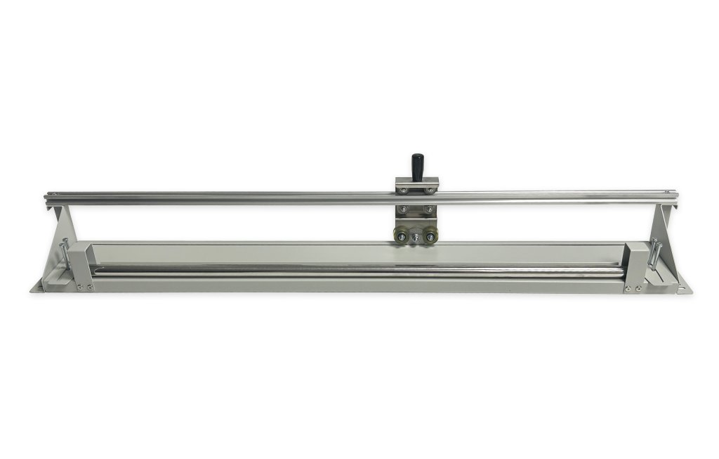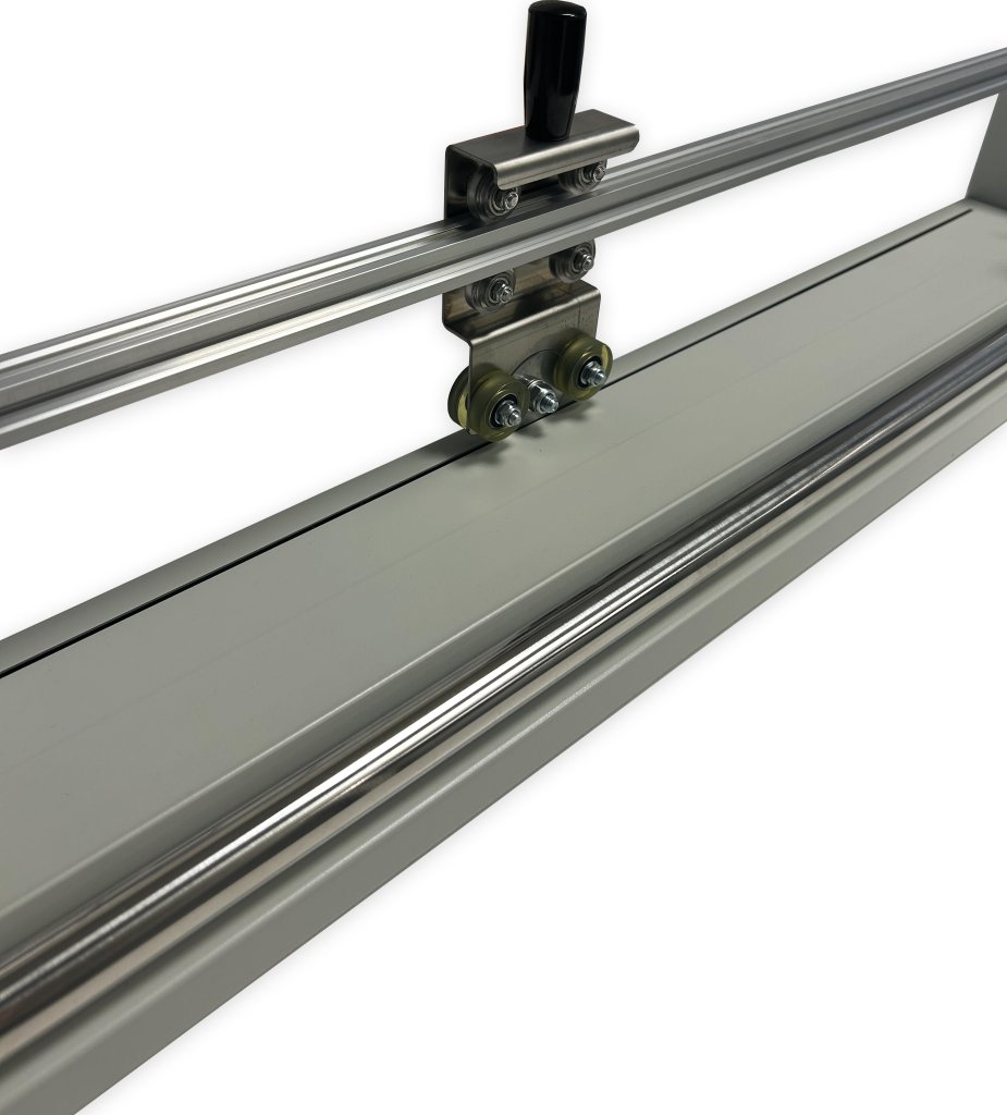 Horizontaler Schneideständer für verschiedene Verpackungsmaterialien. Abmessungen Höhe 1430 x Breite 935 x Länge 1000 mm. Baufarbe grau.