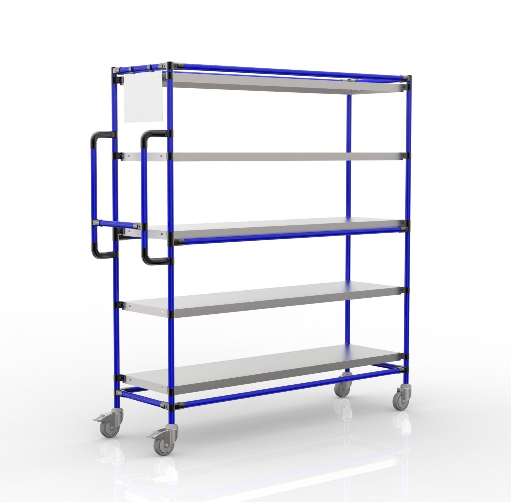 Regalwagen für Behälter mit fünf ebenen Regalböden ist ein praktischer Helfer für den Einsatz in Produktionsunternehmen und Logistikzentren, insbesondere im Bereich E-Commerce.