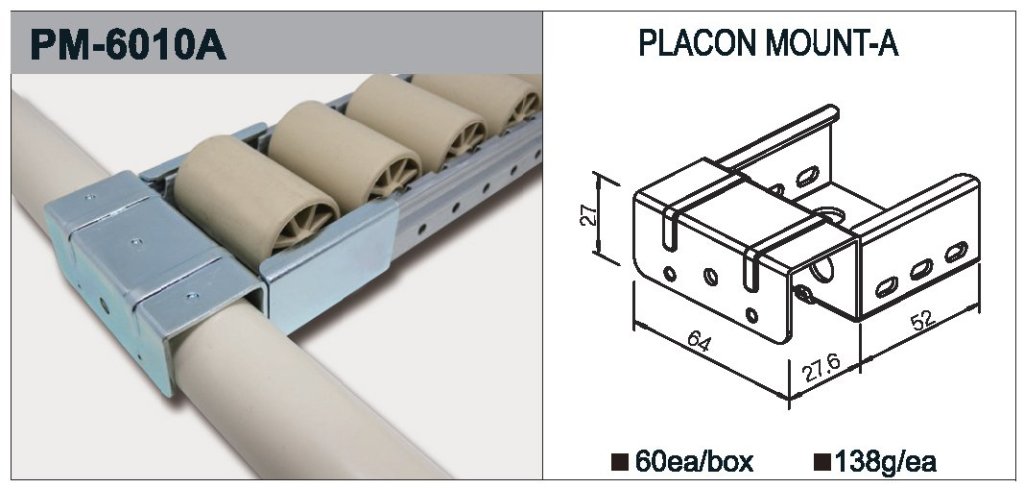 Rollenbahnhalter PM-6010A. Für Rollenbahn-Breite 60 mm, aus Stahl. vollständige Beschreibung und Parameter
