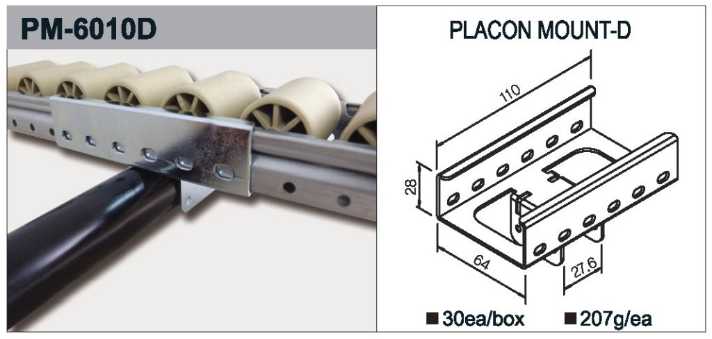 Rollenbahnhalter PM-6010D. Für Rollenbahn-Breite 60 mm, aus Stahl. vollständige Beschreibung und Parameter