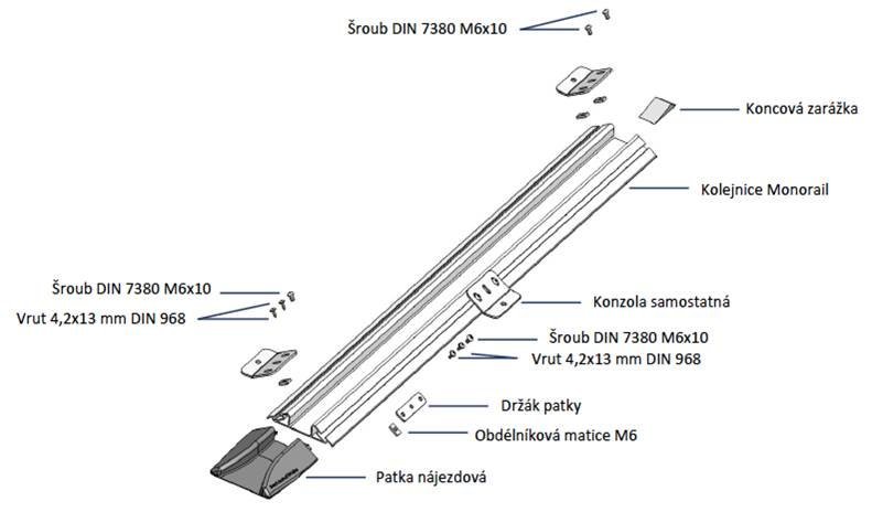 Endplatte für FIFO-Monorail-Schienen, geeignet für reibungsloses Einlenken von Lagerwagen mit Rädern in das FIFO-Monorail-Profil. vollständige Beschreibung und Parameter