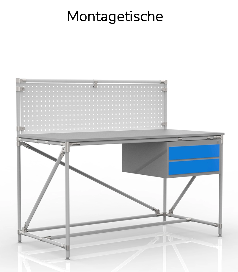 Modulare Baukastensysteme, Verbinder, Rollenbahnen und weiteres Zubehör ermöglichen eine einfache Anpassung des Arbeitsplatzes an aktuelle Anforderungen. Zu den Hauptvorteilen zählen ein niedriger Anschaffungspreis, schnelle Umrüstbarkeit, Erweiterbarkeit sowie unser Garantie- und Nachgarantieservice inklusive fachkundiger Beratung und Schulungen.