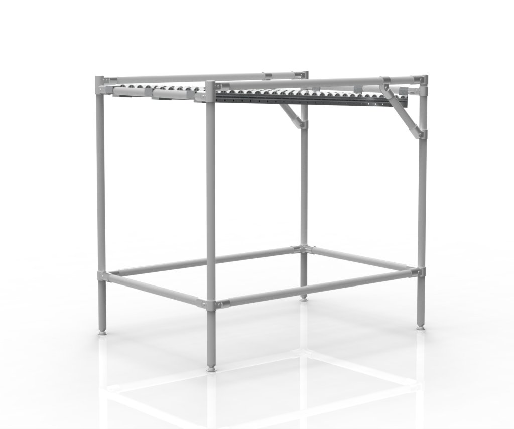 Der Schwerkraftförderer aus einem Rohrbaukastensystem ist für die effiziente Lagerung und den Transport von KLT-Boxen und vollständige Beschreibung und Parameter