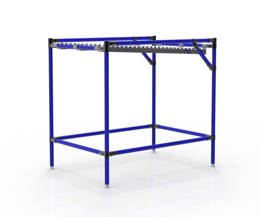 Der Schwerkraftförderer aus einem Rohrbaukastensystem ist für die effiziente Lagerung und den Transport von KLT-Boxen und vollständige Beschreibung und Parameter