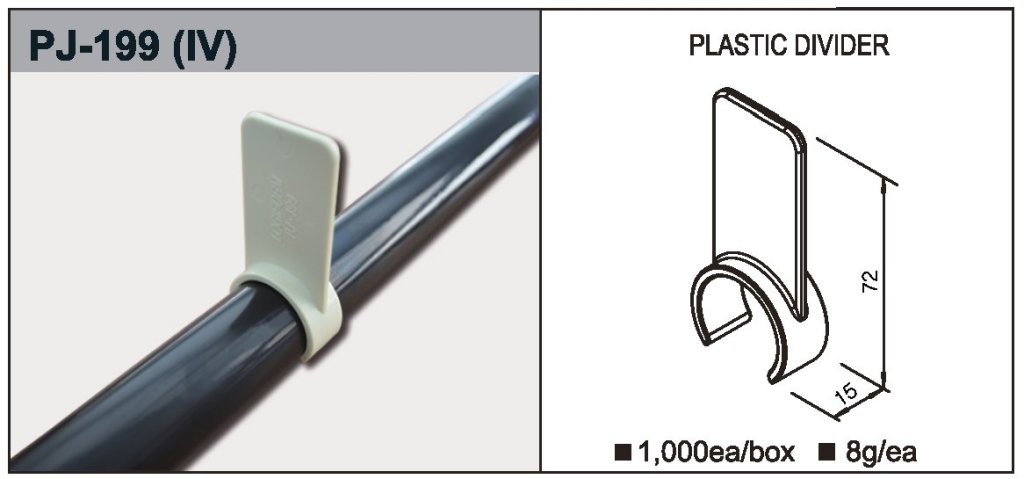 Kunststofftrenner PJ-199. Farbe Ivory (IV) oder grau (GR), Gewicht 8 g. vollständige Beschreibung und Parameter