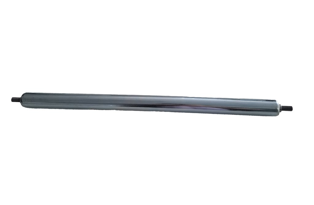 Stahlrolle für Förderanlagen mit einem Durchmesser von 25 mm, M8-Gewinde und einer Länge von 400 mm. Hergestellt aus verzinktem vollständige Beschreibung und Parameter