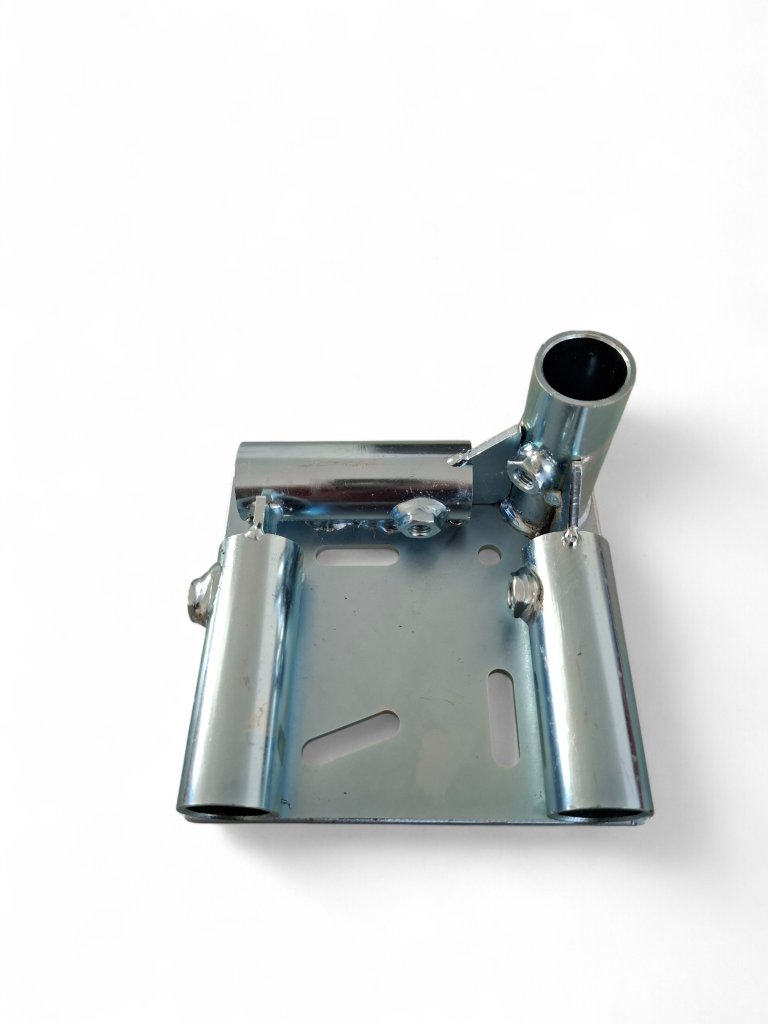 Eckverbindungswinkel mit Löchern zur Befestigung von Rädern mit Platte.