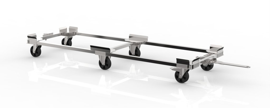 Ein Manipulationsfahrgestell für EURO-Paletten mit einer Deichsel, die es ermöglicht, mehrere Wagen hintereinander zu koppeln (sogenanntes Milk-Run-System). Das Fahrgestell ist für verschiedene Manipulationszwecke in Lagern und Werkstätten geeignet. Dank seiner hohen Tragfähigkeit von 750 kg ist es ideal für den Transport schwerer Gegenstände. Das Fahrgestell ist mit 2 schwenkbaren Rädern mit Bremse und 2 schwenkbaren Rädern ohne Bremse mit einem Durchmesser von 125 mm ausgestattet, die eine einfache Handhabung der Gegenstände ermöglichen. Die Abmessungen des Fahrgestells sind 1240 x 840 x 238 mm. ESD-Variante möglich.