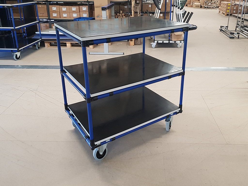 Der Transportwagen aus einem Rohrbausatzsystem ist ein praktischer Helfer, der sich für industrielle Bereiche, Lager und vollständige Beschreibung und Parameter