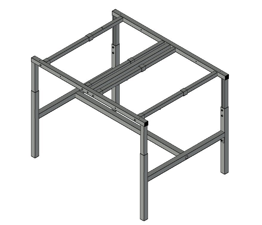 Untergestell für höhenverstellbaren antistatischen Tisch aus massiven Stahlprofilen. Abmessungen 650 - 950 x 1500 x 900 mm.